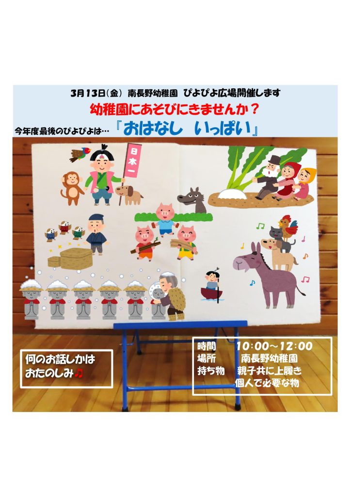 ぴよぴよ広場 3月13日(金)『📚おはなし いっぱい!」のご案内
