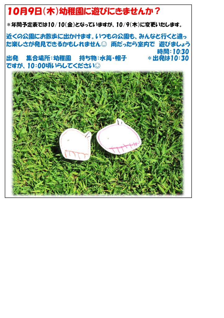 10月9日(木)未就園児ひろば『幼稚園に遊びにきませんか?』のご案内