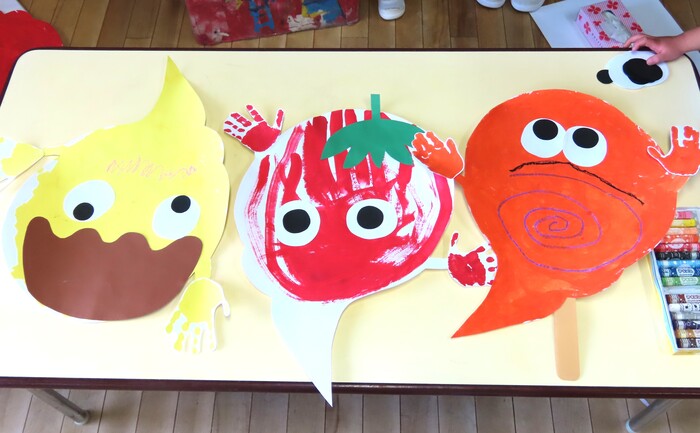 自分で作った小道具が嬉しくて、「見て!」と見せに来る子どもたちです。