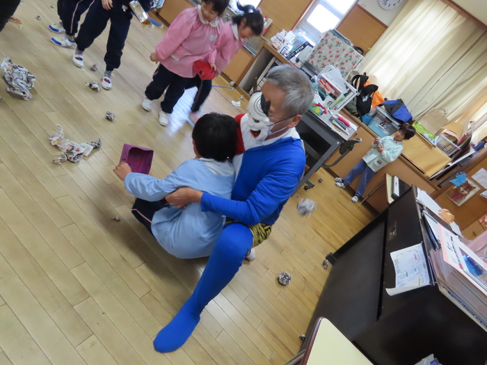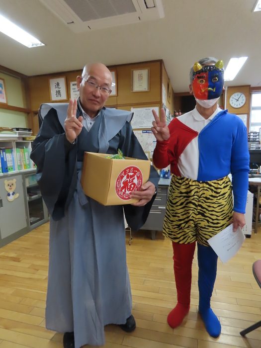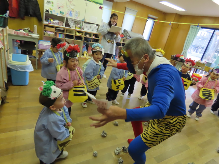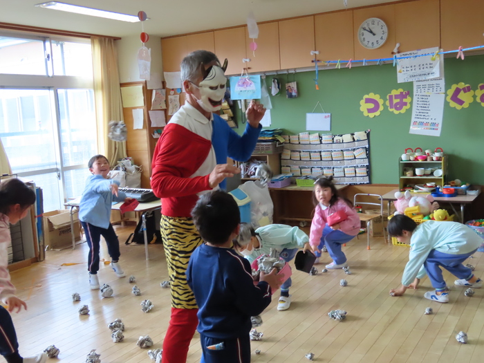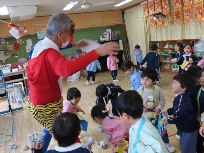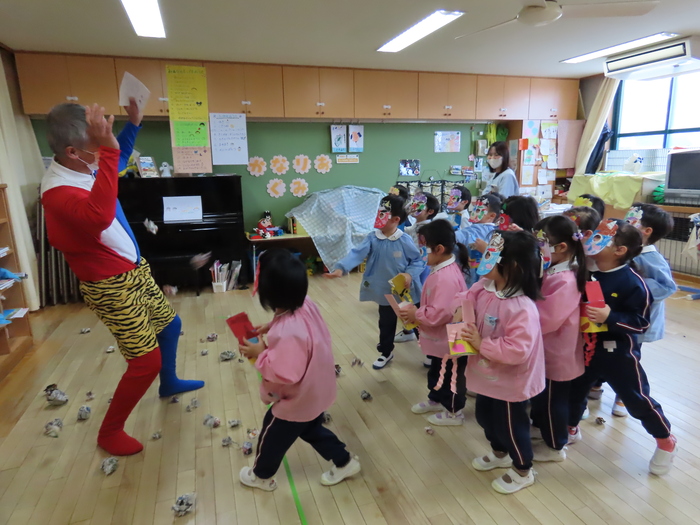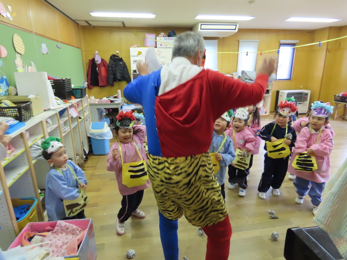 2月になりました。節分です。幼稚園でも豆まきです。