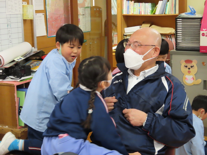園長先生にもくっついてあそんでもらいます。