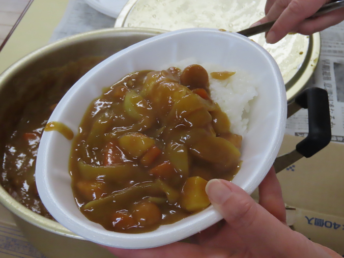 「いただきます。」大鍋のカレーがきれいに空っぽになりました。