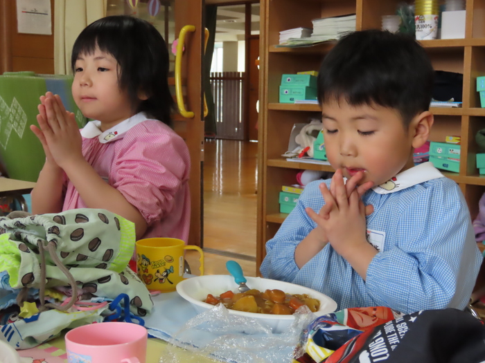 年長さんはカレーパーティーです。手洗い・消毒徹底!