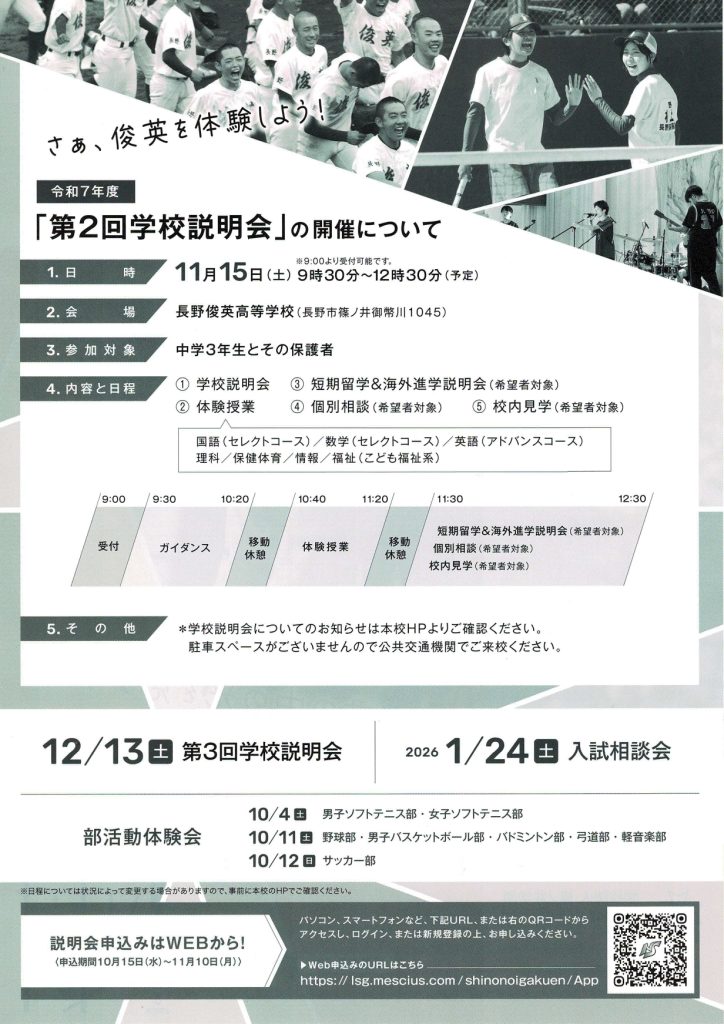 【中学3年生ならびに保護者のみなさまへ】令和7年度学校説明会について