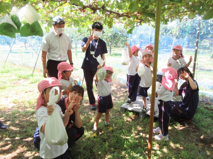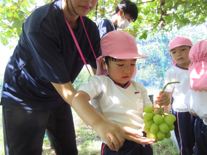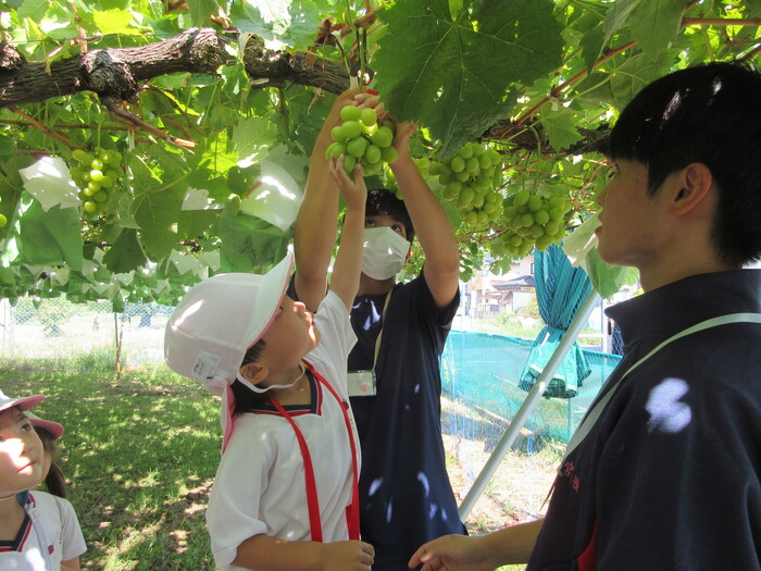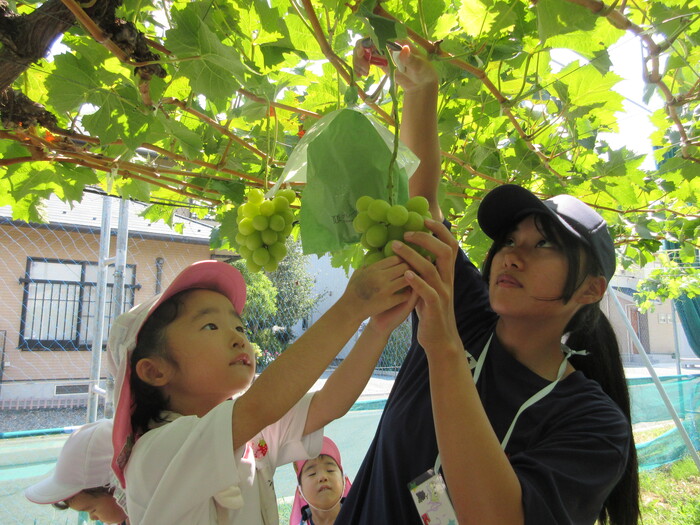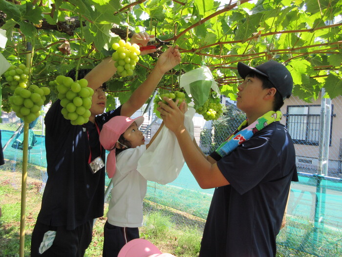 果樹コースのお兄さんお姉さんの育てているシャインマスカットを収穫させてもらいました!!