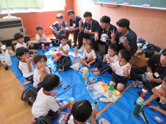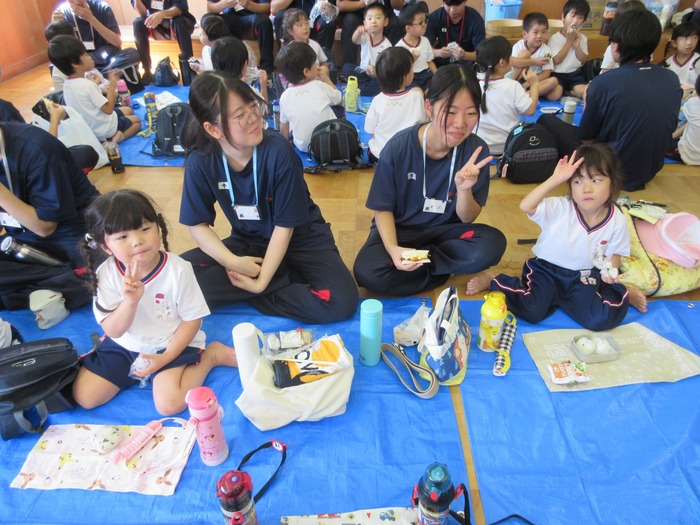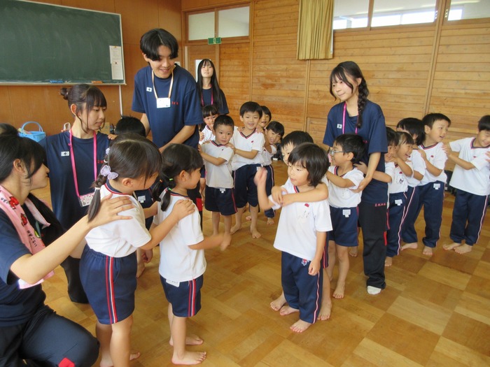 室内では、クイズ大会や「ハンカチ落としゲーム」「じゃんけん列車」を考えてくれた高校生の皆さん。