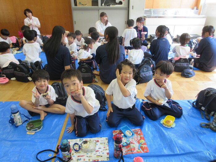いつも幼稚園の畑にサツマイモの苗をいっしょに植えてくれたり、きれいなお花を届けてくれたりする更級農業高校の皆さん。今度は年中組が高校にお邪魔しました☆