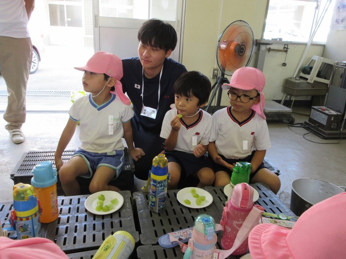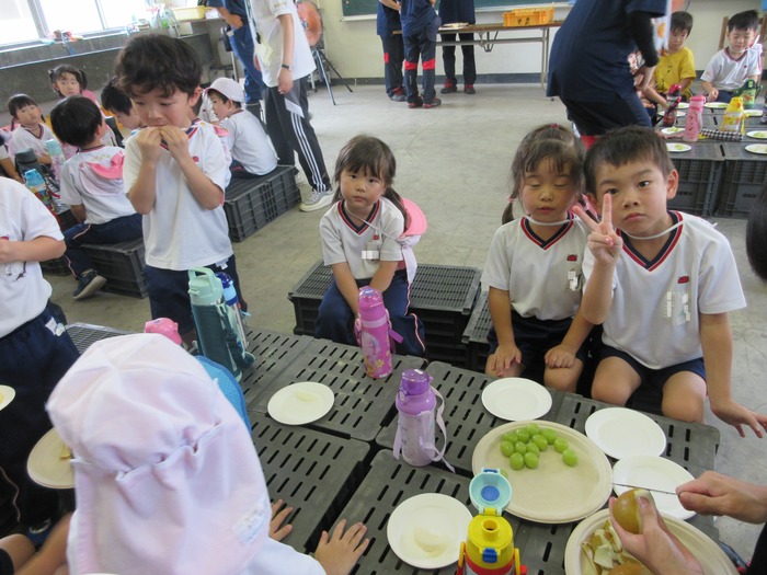 収穫のあとは、ぶどう・梨・リンゴを食べやすい大きさに切って、試食させてもらいました♡