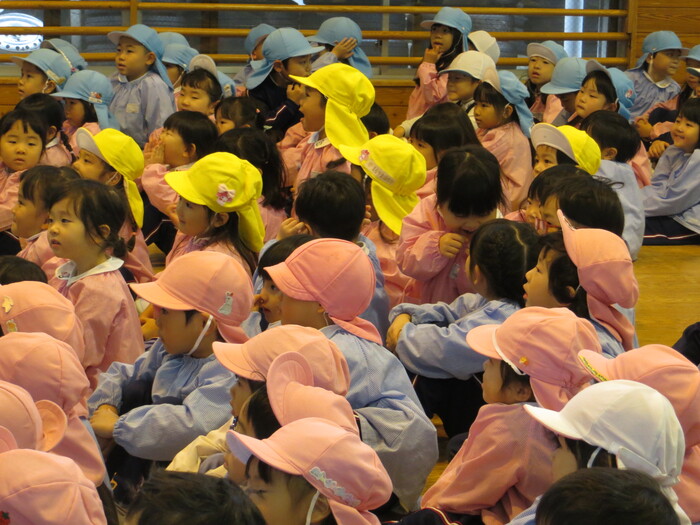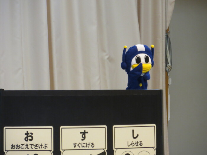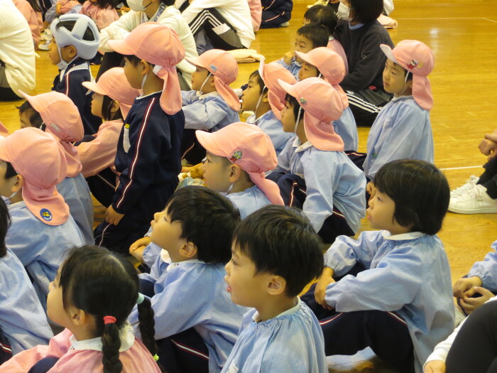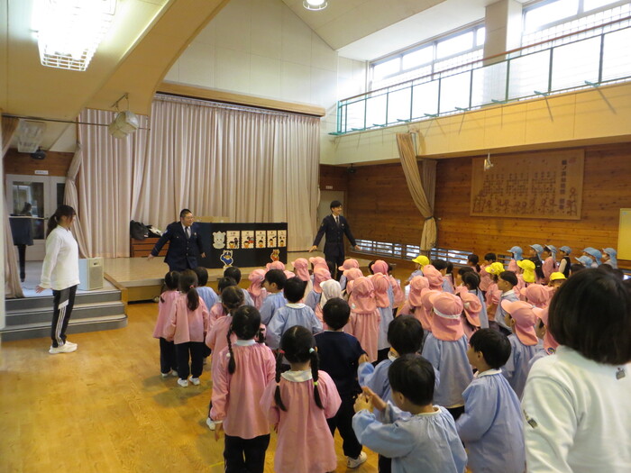 素早く非難する子どもたち。警察の方に褒めてもらいました!