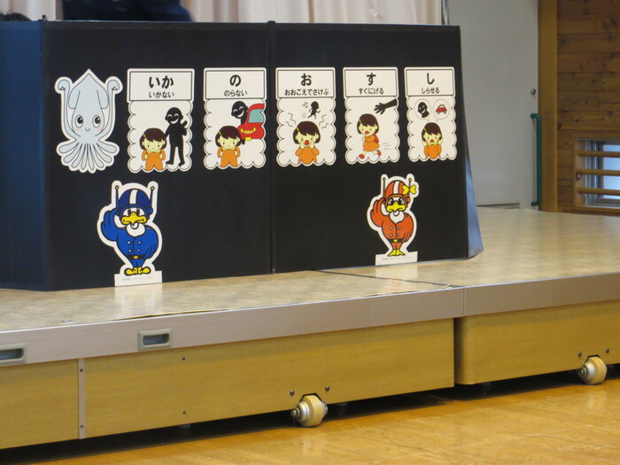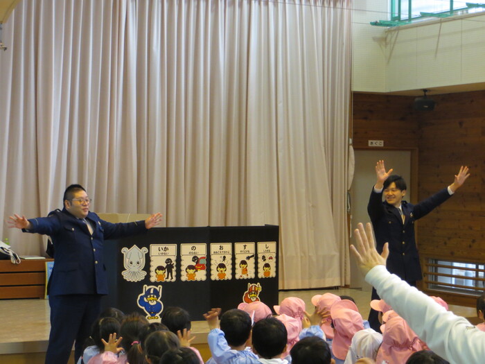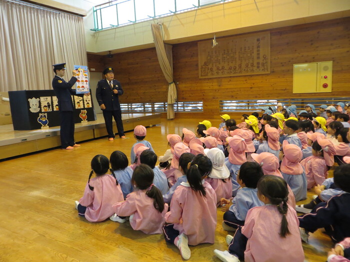 素早く非難する子どもたち。警察の方に褒めてもらいました!
