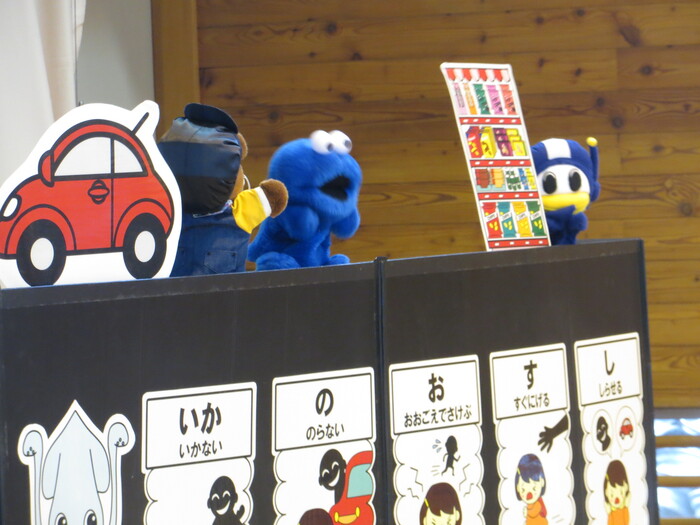 訓練のあとは、パペットによる実演で、「悪い人について行かない」ことを
