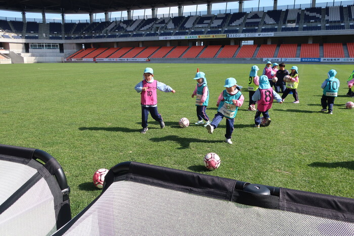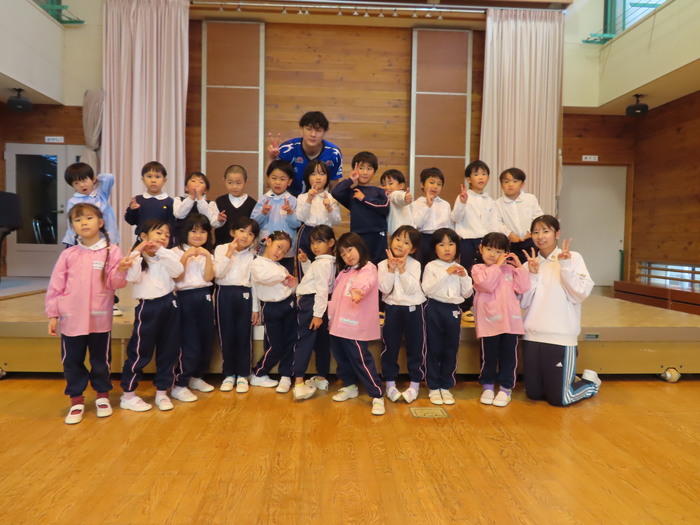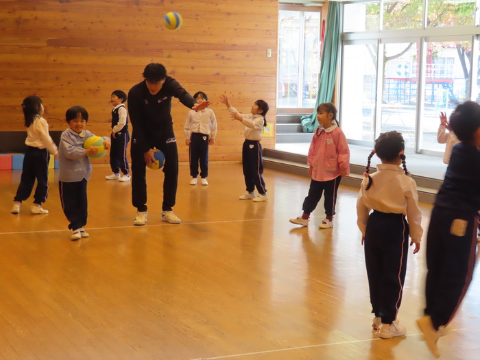 春には、信州ブレイブウォーリアーズの方からバスケットボールを、ボアルース長野の方からフットサルを教えていただいた年長さん!