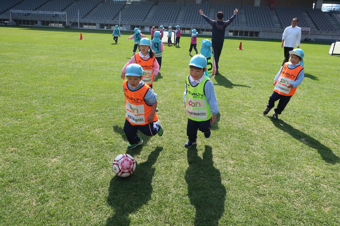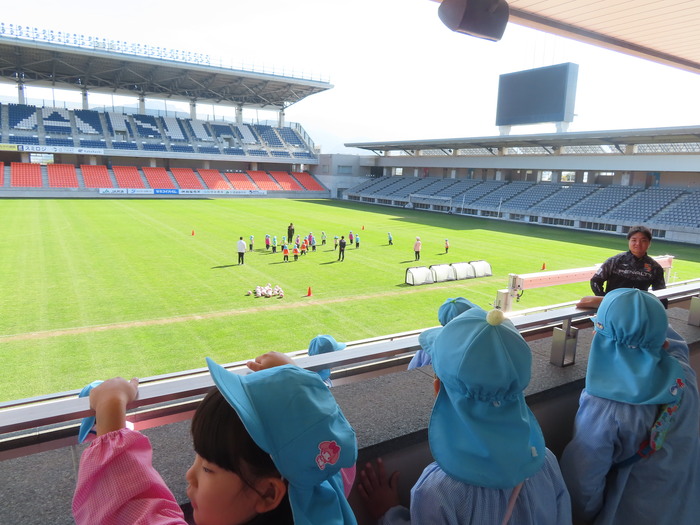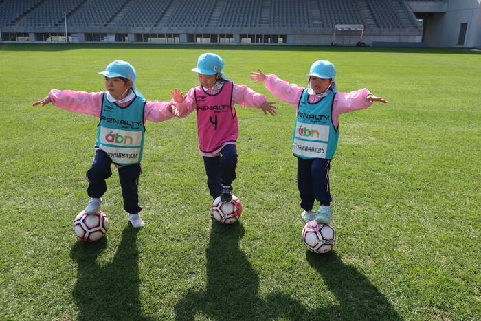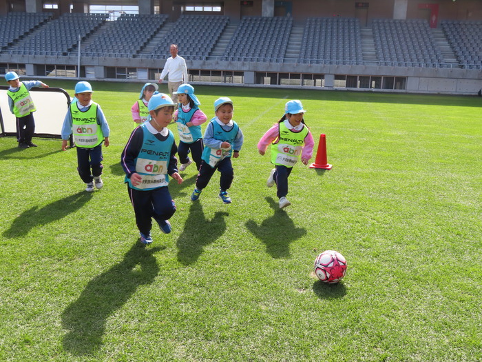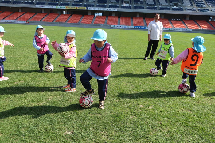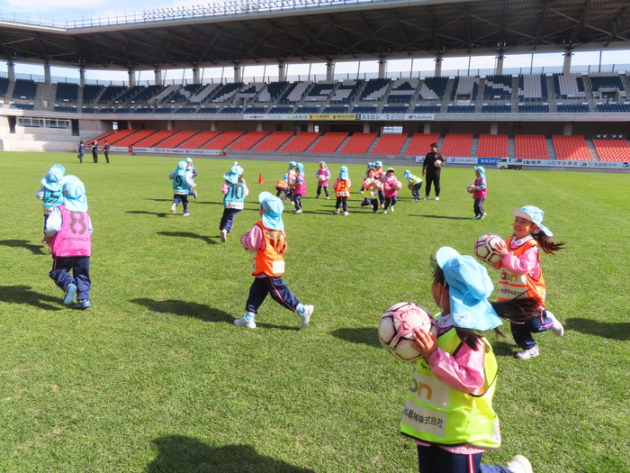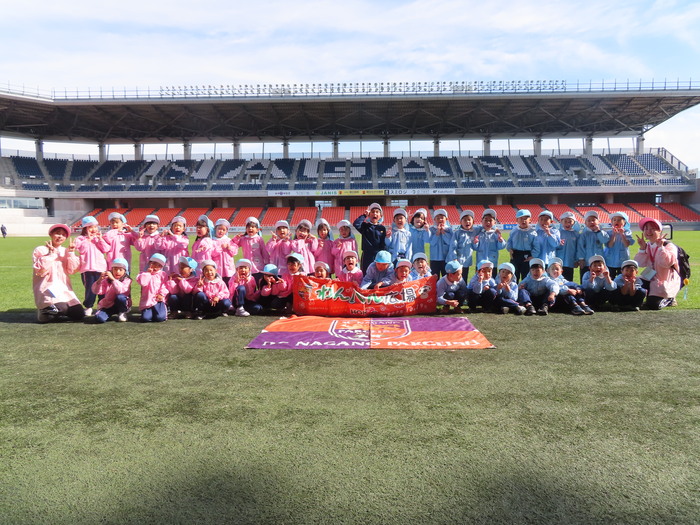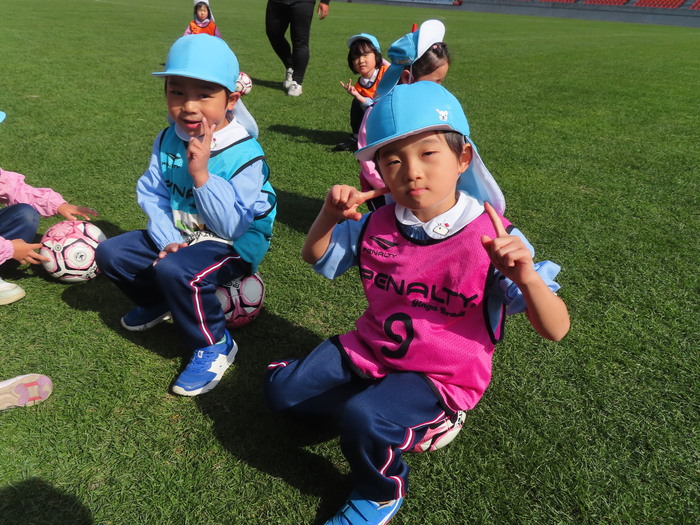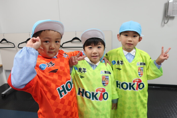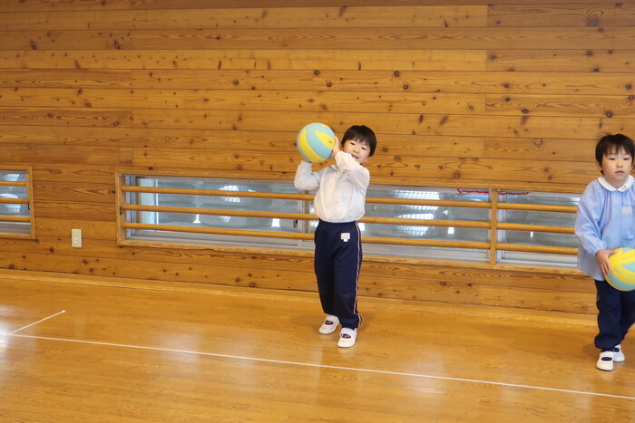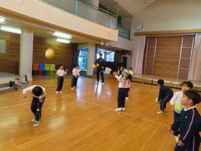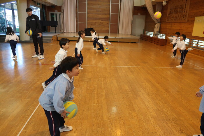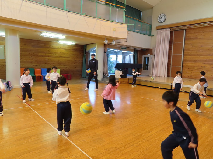 春には、信州ブレイブウォーリアーズの方からバスケットボールを、ボアルース長野の方からフットサルを教えていただいた年長さん!