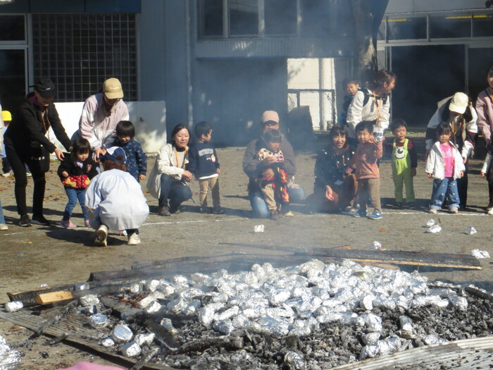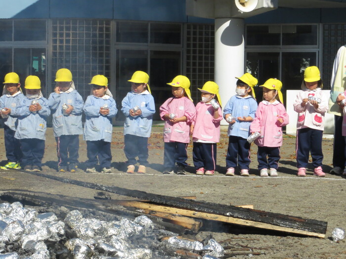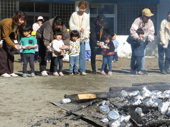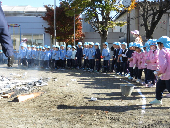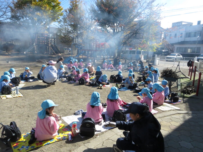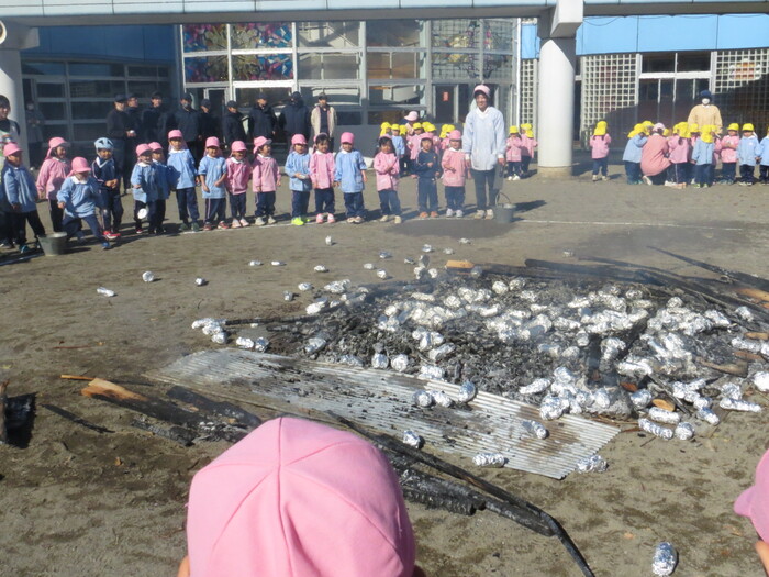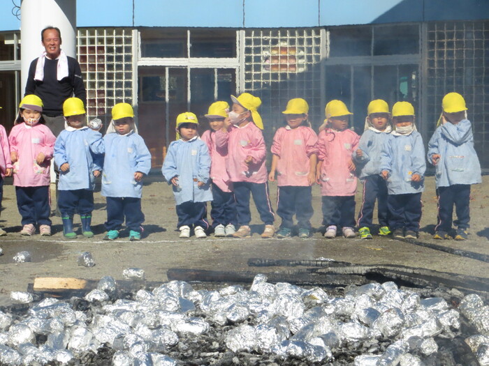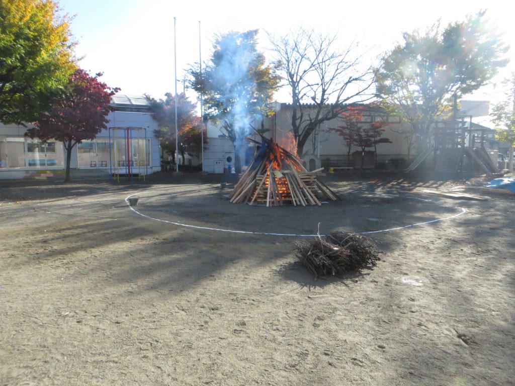 朝から園庭にはキャンプファイヤーのような大きな火が燃えています!