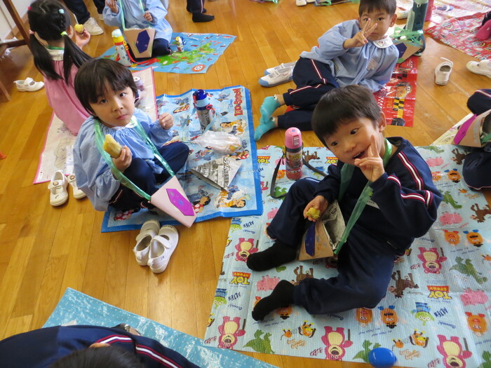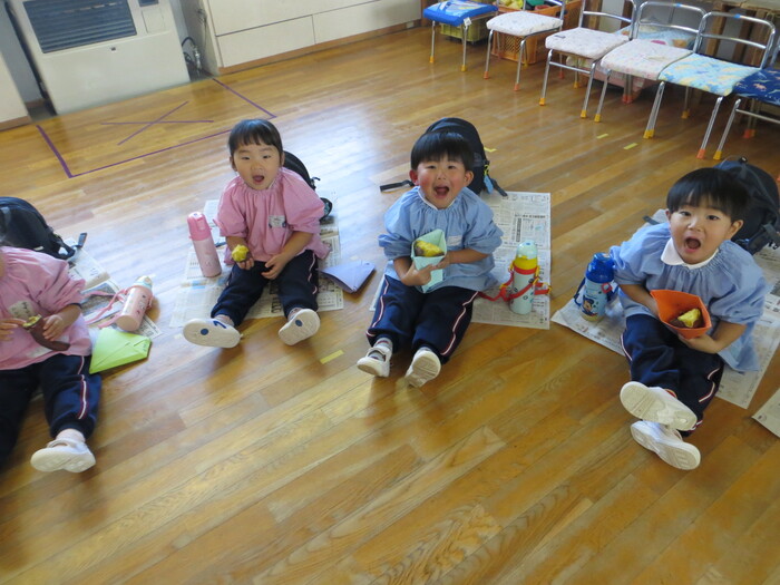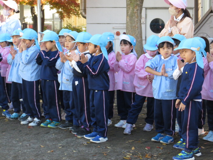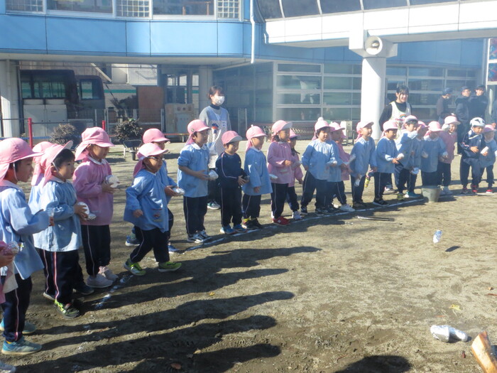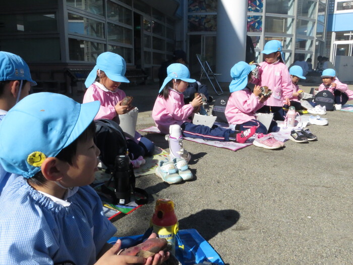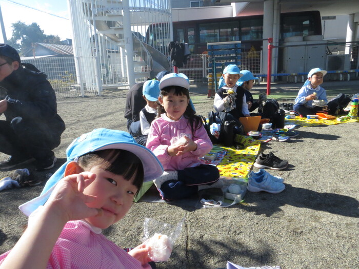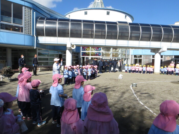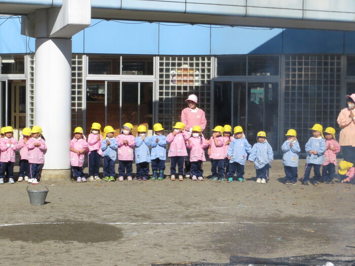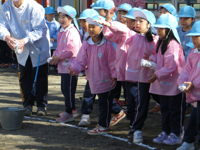 朝から園庭にはキャンプファイヤーのような大きな火が燃えています!