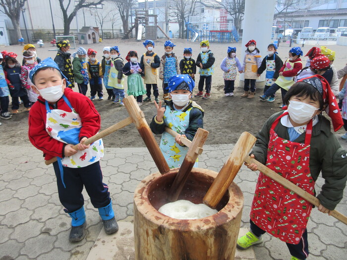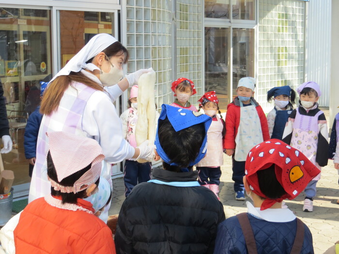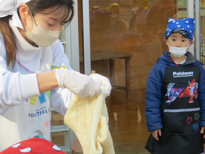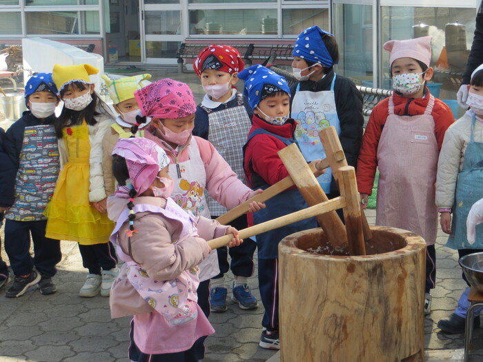 おもちつきをする前に、蒸かしたもち米を試食しました!