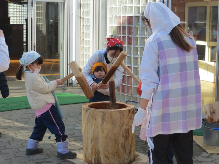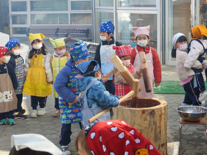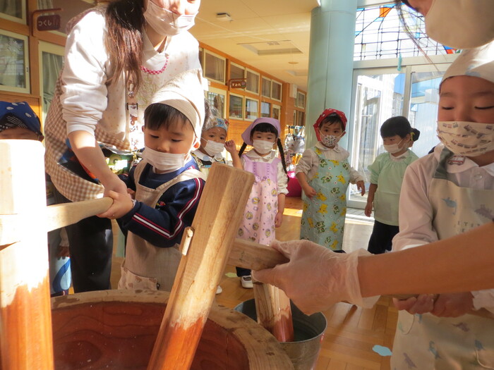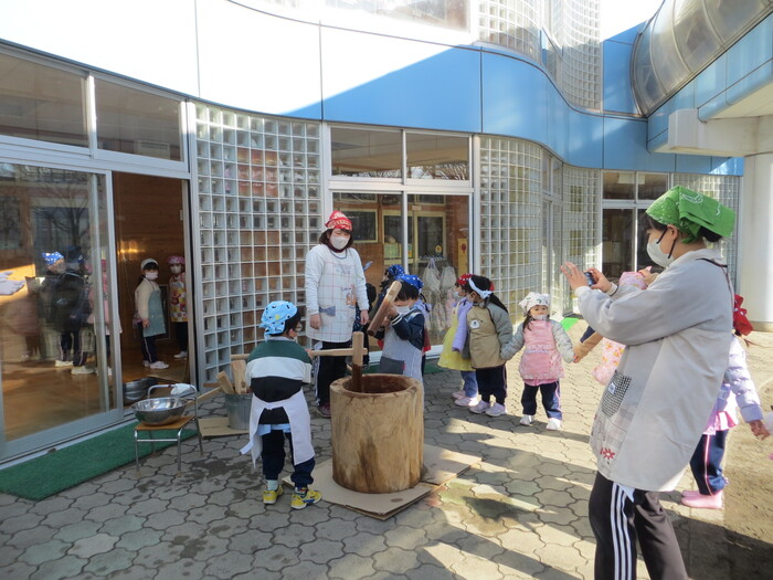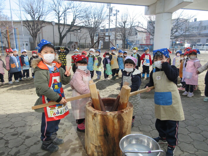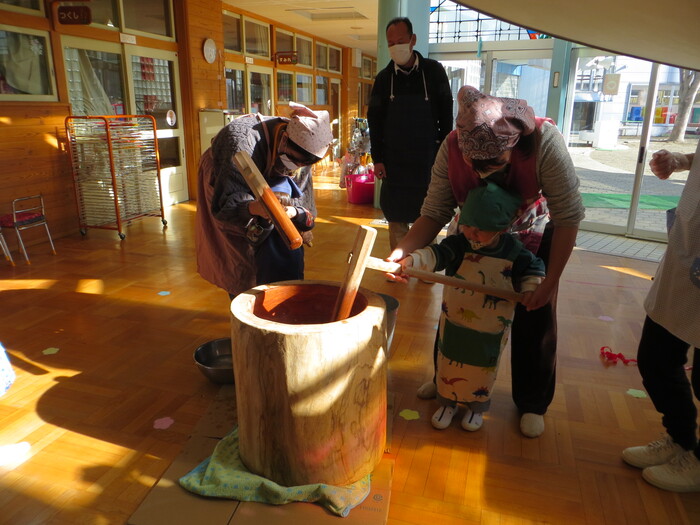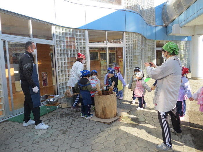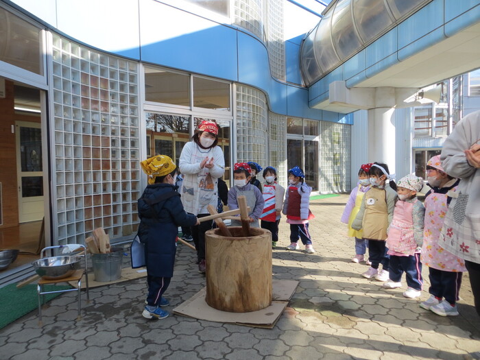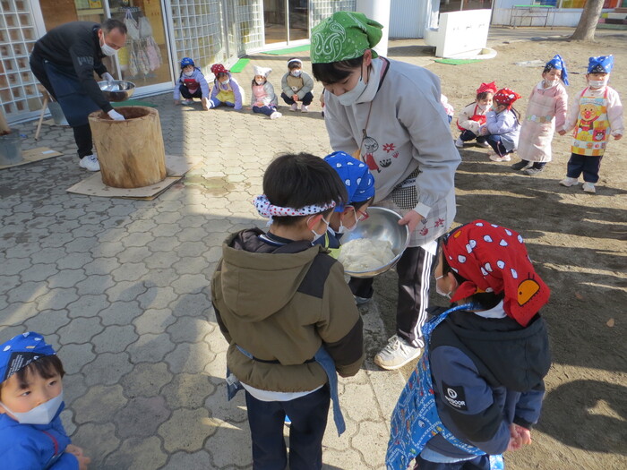 おもちつきをする前に、蒸かしたもち米を試食しました!