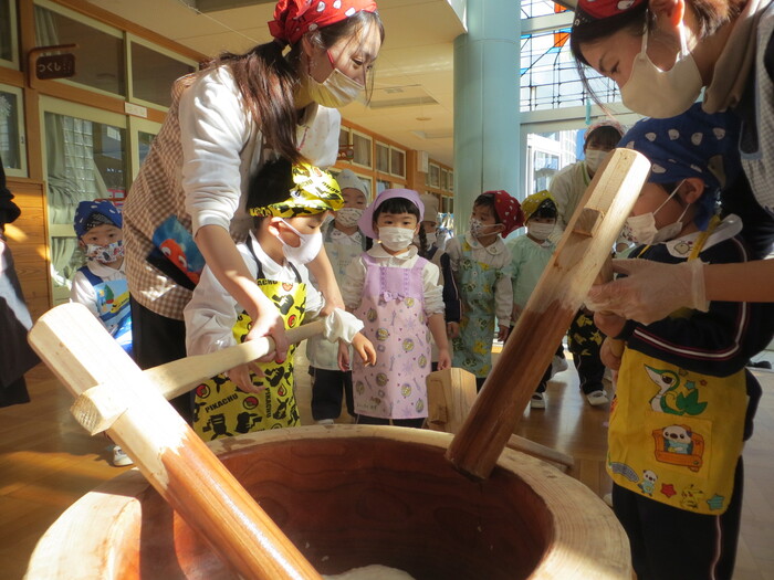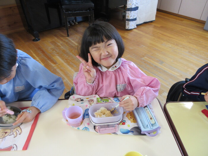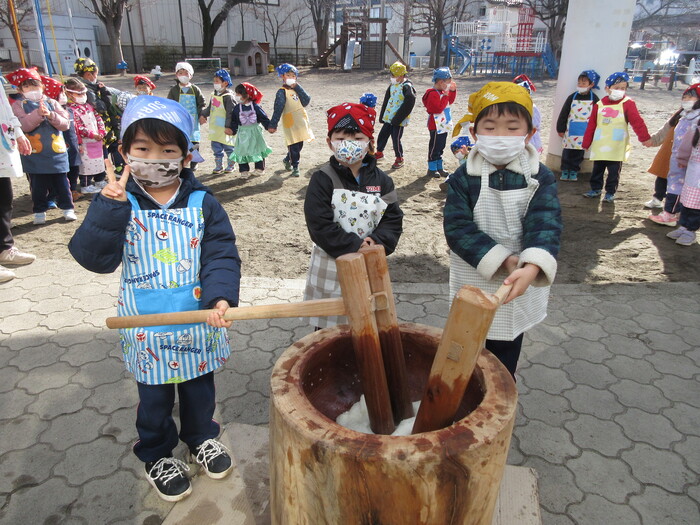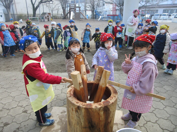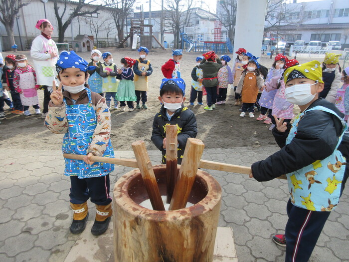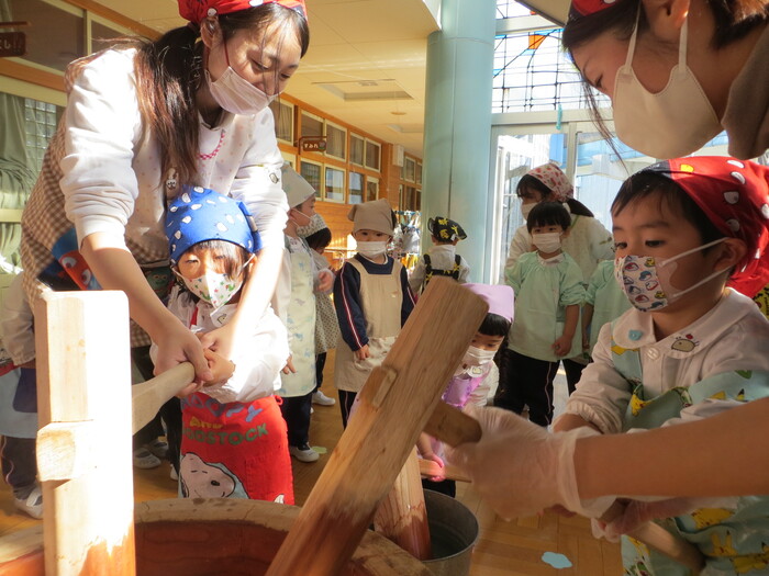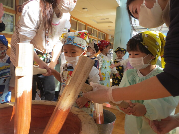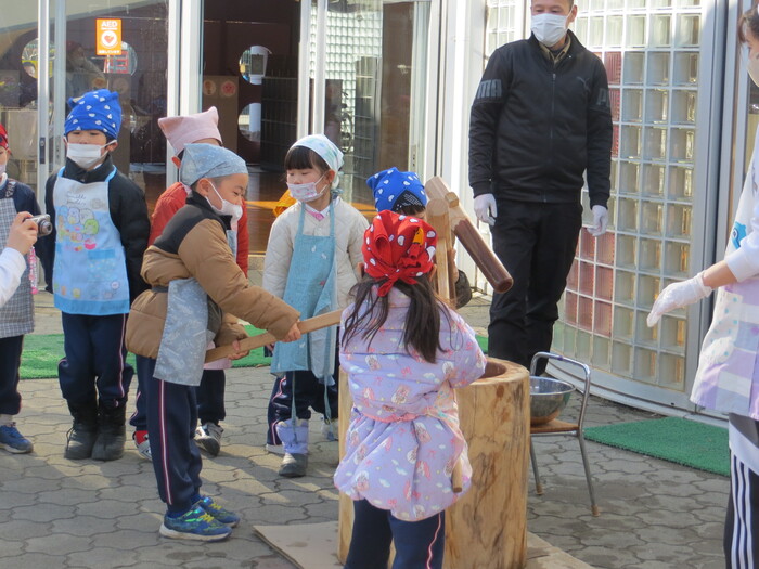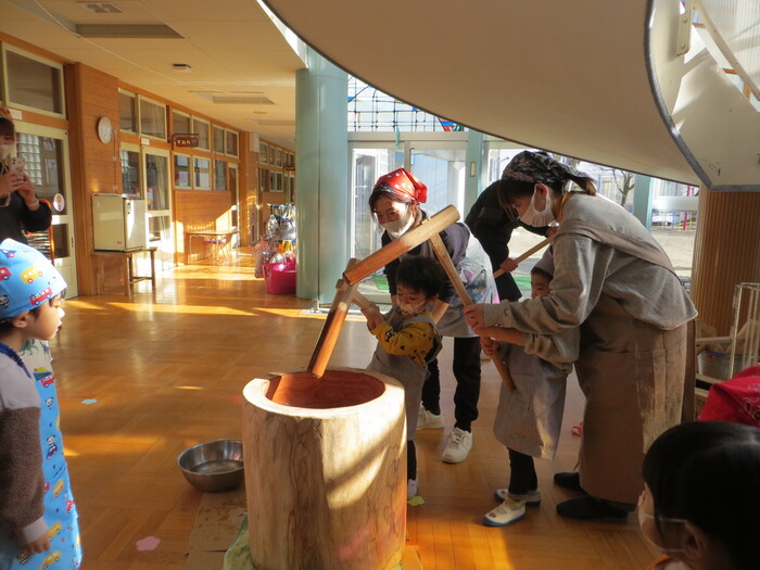 おもちつきをする前に、蒸かしたもち米を試食しました!