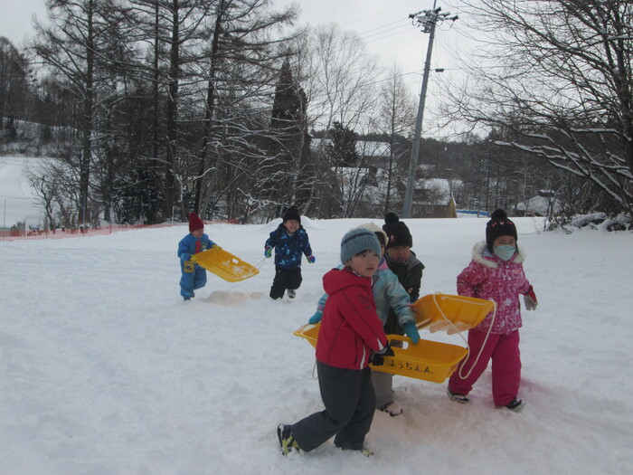 年長さんが楽しみにしていたそり遊び、