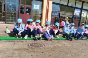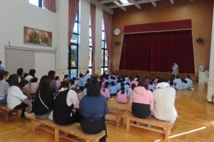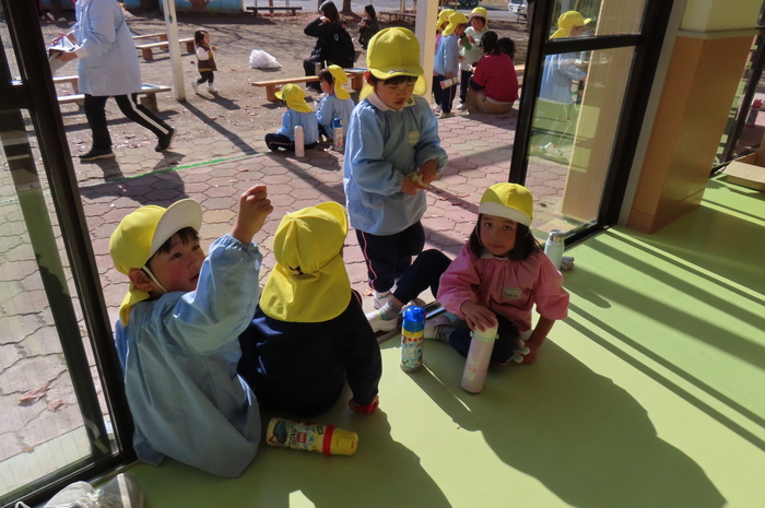 サツマイモが焼けるまで、お遊戯室に集まってクイズやお話を楽しみました。