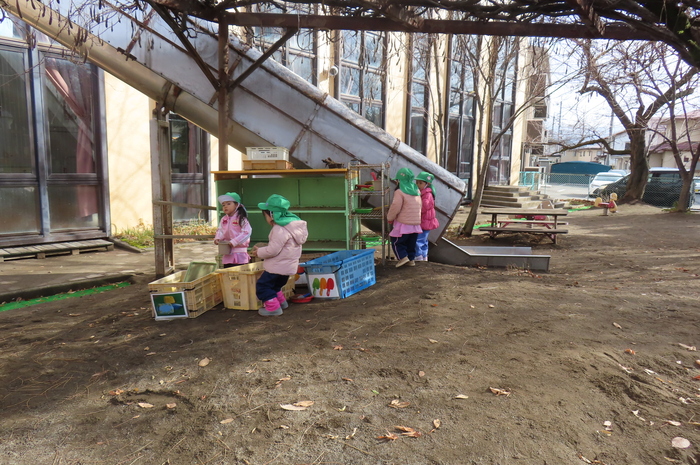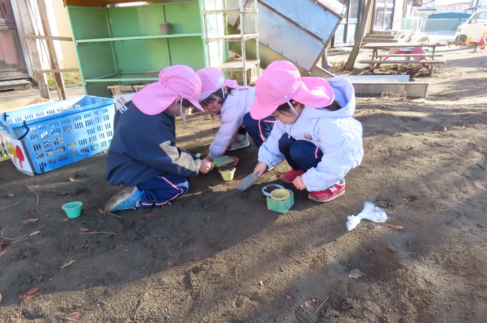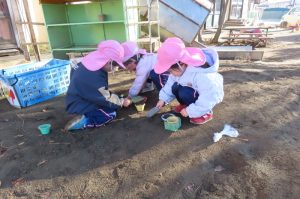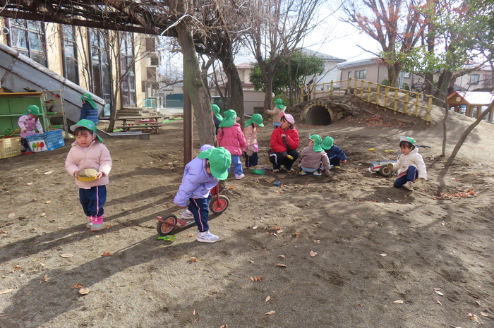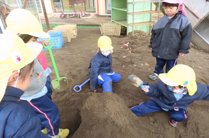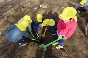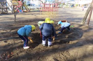 年中さんは、砂場遊びがダイナミックになってきています。