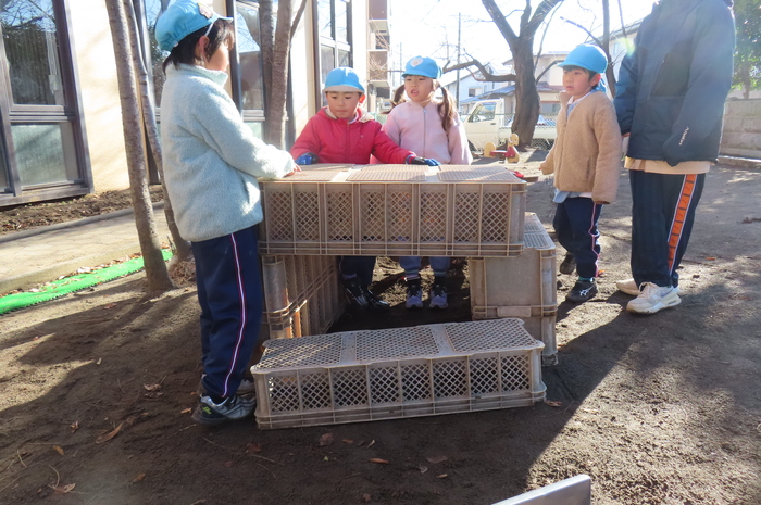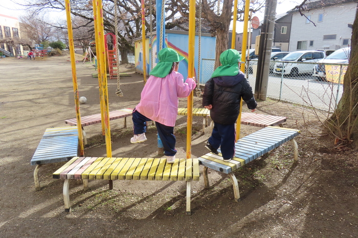 年長のお兄さんお姉さんがしている遊びを真似して、自分たちで挑戦するようになりました。