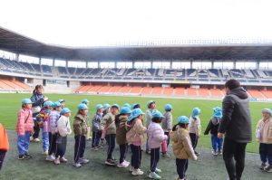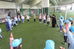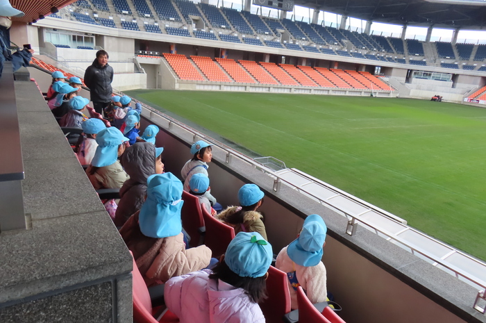 年長さんは、野球体験や、パルセイロのスタジアム見学などなど、園外の方との交流活動も