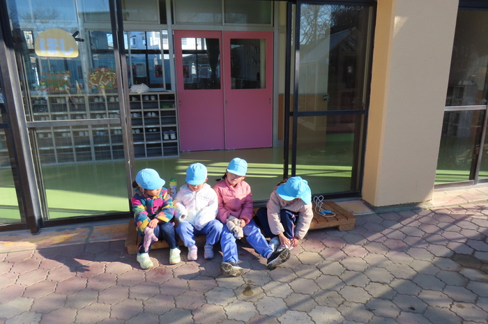 寒くて日向ぼっこ中