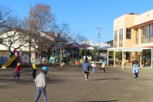 外遊びが大好きなかぜ組さん。登り棒やスクーターにも挑戦しています。