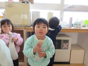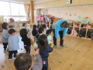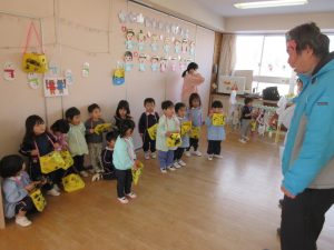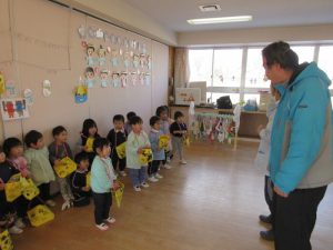 「いちご組さん、寒さに負けない強い体になって、たくさん遊ぼうね。」