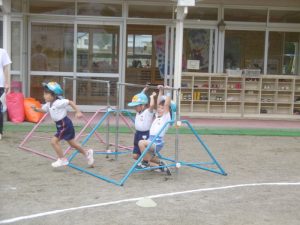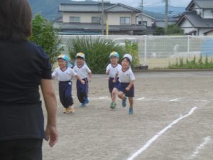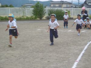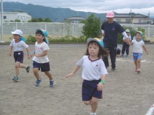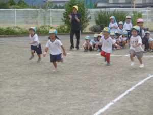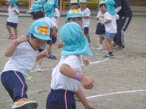 ブログ 2025.09.19 運動会に向けて益々張り切る子どもたち 2 年少さんも、リズム、かけっこの2種目をがんばって練習していました。表情にも、やる気、元気がみなぎってきました。<リズム><かけっこ>