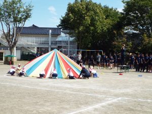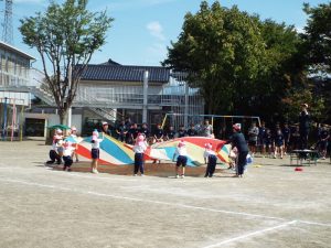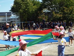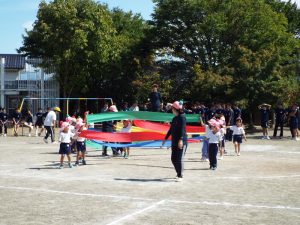 年長さんはたくさんの応援を受けて、組体操にも力が入りました。また、リレーも一緒に走ってくれたので、より早く最後まで頑張りました。年中さんもパラバルーン、かけっこのお手伝いをたくさんしていただきました。たくさんの拍手もいただきました。