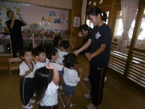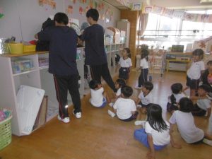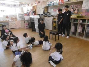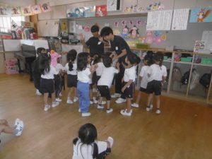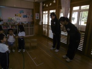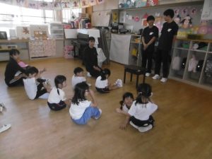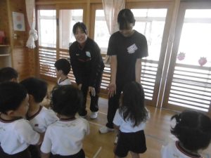 こども・福祉コースの皆さんは、12名の生徒さんが各クラスに入り、子どもたちと一緒に過ごしてくれました。今回も子どもたちが楽しんだり興味を持ちそうな内容を事前に考えて、しっかり準備をしてきてくださいました。定期的に来てくださっている生徒さんたちなので、子どもたちも緊張することなく、距離感も感じさせないほどの仲良しになっていました。子どもたちへの声がけや支援など、とても感心するところが多く、担任の先生方からは感謝の言葉が多く聞かれました。子どもたちは優しい先生が大好きです。帰る時には子どもたちが、お兄さん先生お姉さん先生から離れない姿も見られました。たくさんの楽しい企画、そして子どもたちへの温かい支援、本当にありがとうございました。