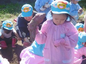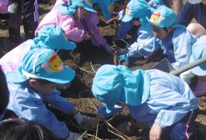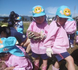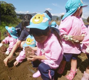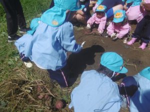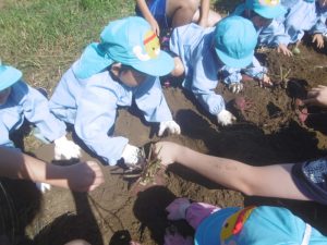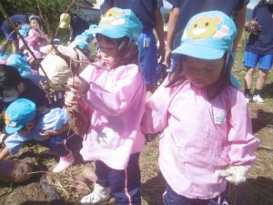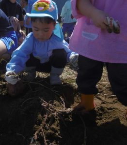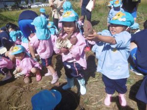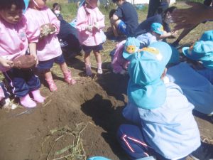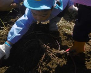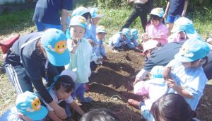 年少組のさつま芋掘り〜更北中3年生と〜