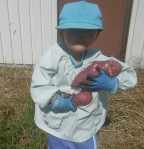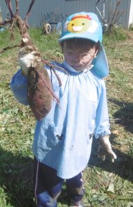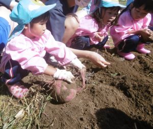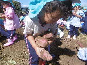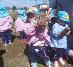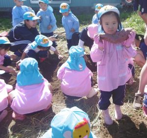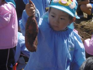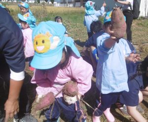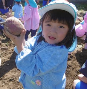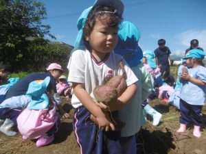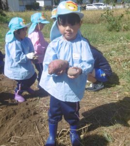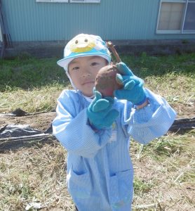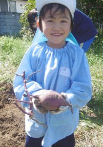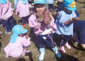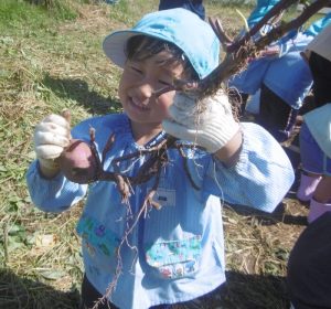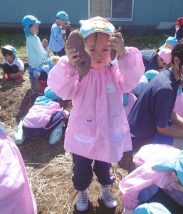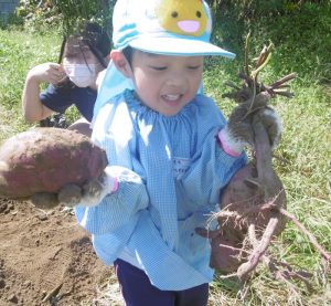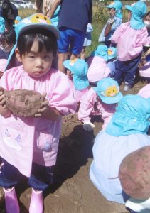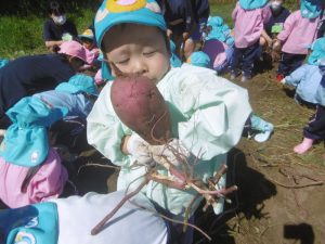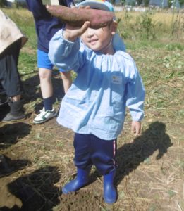 <大きなさつま芋を一緒に掘ってくれてありがとう!>