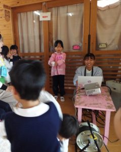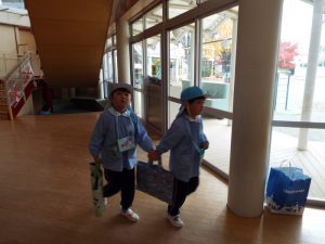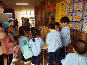 商店街ウイーク最終日も、商店街は賑わいました。最終日のお客様は1歳児教室「どんどこあそぼっこ」の皆さんと篠ノ井幼稚園年長組の皆さんです。
