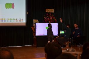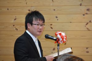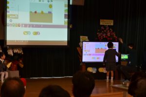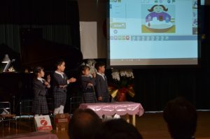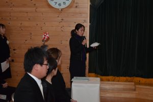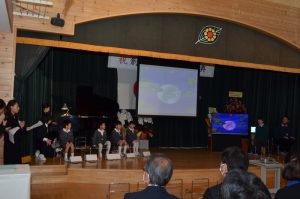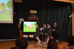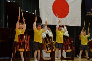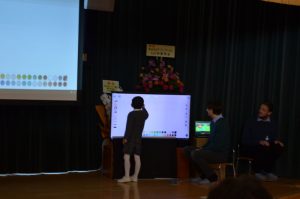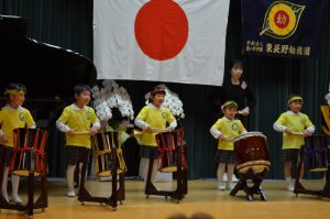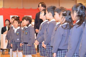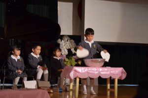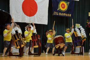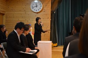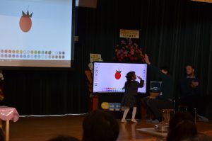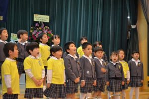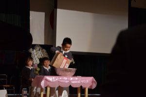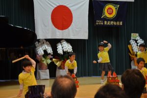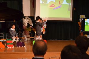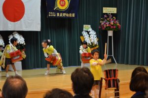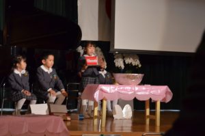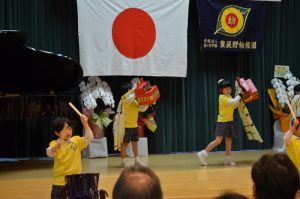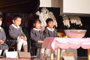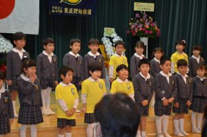 式典では主催者挨拶、お客様のご祝辞の後に、年長組がお祝いの発表をしました。