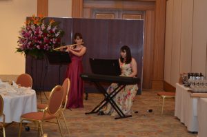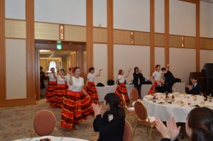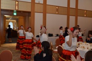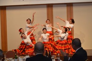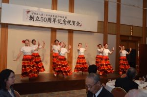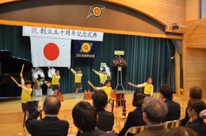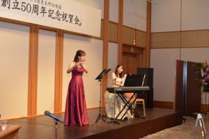 祝賀会はお客様に感謝の気持ちを込めて生のフルート演奏、ピアノ演奏がございました。また、PTAジャズダンスサークルの皆さんには「信濃の国」等を、素敵な振り付けで発表をしていただきました。