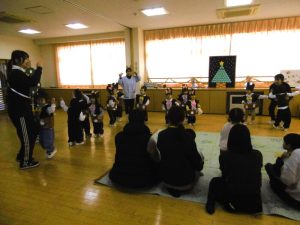 火曜日のタムタム教室では、一足早いクリスマスお楽しみ会をやりました。親子でホットケーキにデコレーションをして楽しんだり楽しいクリスマスのお楽しみ会をしたりして会場はきれいなクリスマスカラーに包まれました。幼稚園のいちご組さんも、素敵な衣装を着て登場しましたよ。楽しいパフォーマンスを見せてくれたり一緒にダンスをしたりして、仲良く楽しい時間を過ごしました。