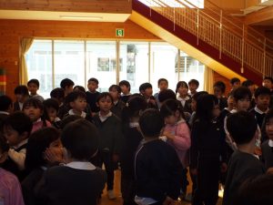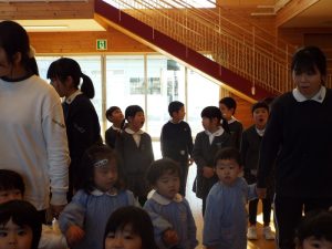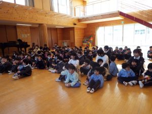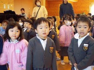 3学期が1月9日より始まりました。寒さが増す1月半ばですが、冬休み明けの欠席者は少なく、特にフルエンザなどの感染症も休み明けより報告はありません。子どもたちの元気に遊ぶ姿がたくさん見られる3学期スタートとなりました。一方では、折り紙で花束を作って、先生方一人ひとりに「ありがとう」の文字を添えて渡す年長さんの姿も見られます。卒園前の幼稚園生活を大切に過ごしている年長さんのたくましく育った姿が嬉しくもあり、ちょっぴり寂しくもある3学期の幼稚園です。