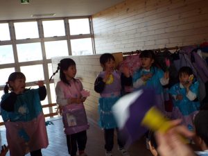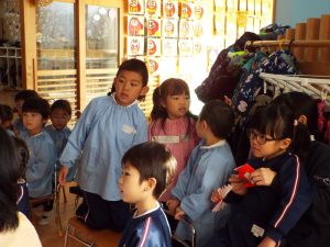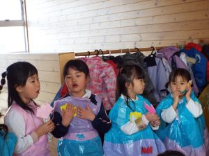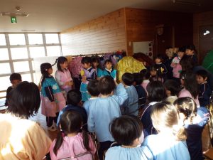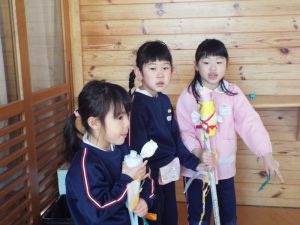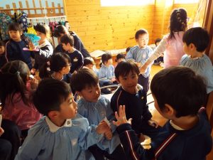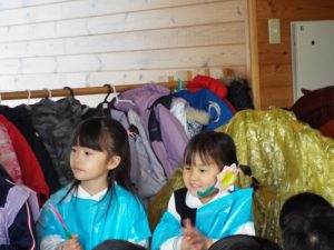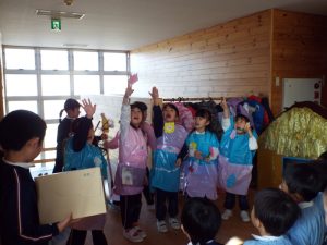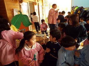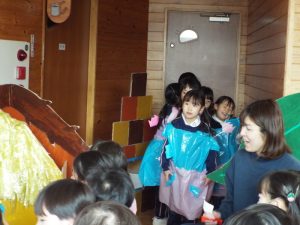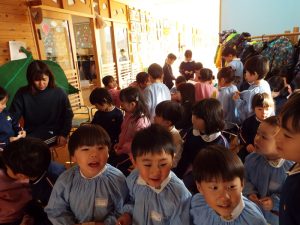 年長組は50周年記念式典で発表したり、運動会で組体操を発表したり、何と言っても『東長野商店街』に向けて、毎年、自分たちの力で考え工夫し、企画運営をしてきた体験があります。これまで培ってきた「みつけ」「のりだし」「とことん遊びこんできた」体験が、このようなライブをやりたいという願いを生み、意欲につながり、実行に向けて企画推進していってしまう行動力、実践力をも生み出しているんですね。後に続くお友だちたちは、このような年長さんの姿に、しっかり触れて、見て、考えて、ともに満足して、自分づくりをしながら、きっと心の中に、新しいやりたいパワーが生まれているに違いありません。