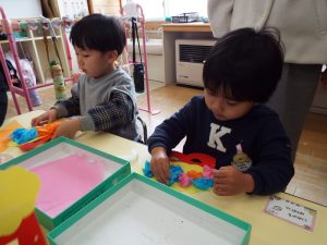 <幼稚園のお友だちと遊ぼう;1クラスに5人〜6人くらいの小さなお友だちが仲間入りです。>