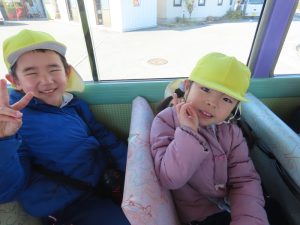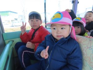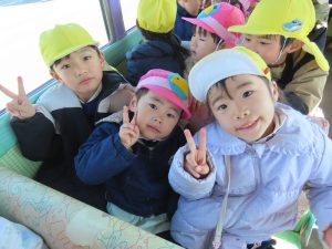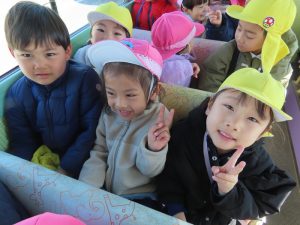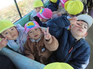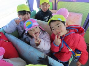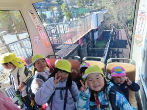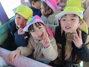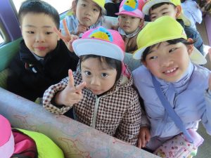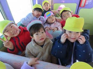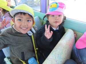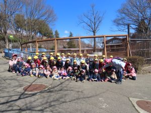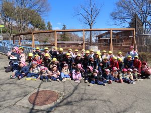 ゆり組さんがいちご組さんと一緒に園外保育に出かけました。行き先は、茶臼山動物園です。いつもいちご組さんのお部屋に行って一緒に遊んであげている年長組さん。素晴らしいアイデアにいちご組さんも大喜びです。園バスに乗って、年長組のお兄さんお姉さんに見守られながら出発していきました。一緒に動物を見たりお昼を食べたりして春の足音が聞こえる動物園や自然を満喫して帰ってきました。いちごぐみさんにとっても、年長組さんにとっても、とても心に残る思い出の日となりました。いちごぐみさん、年長組のお兄さんお姉さんと一緒に園外保育に行けて、よかったね。